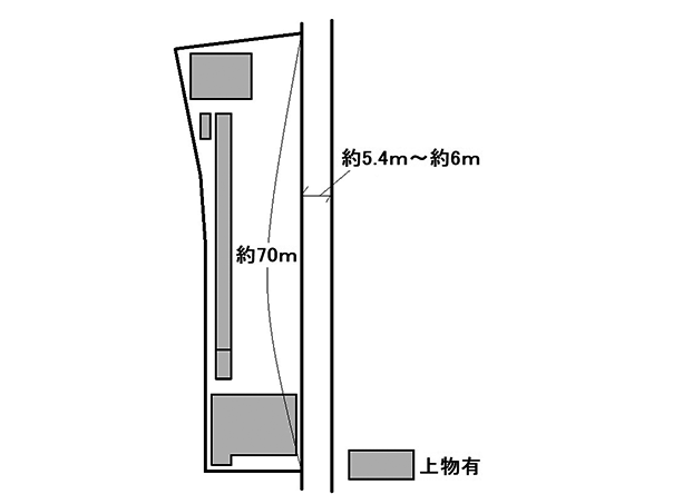 | 備考 | ※現況:上物有 ※引渡日:相談 ※間口:[東側]約70m、幅員:[東側]約5.4m〜約6m ※用途地域:準工業地域、建ぺい率:60%、容積率:200% ※崖条例に該当する可能性あり |